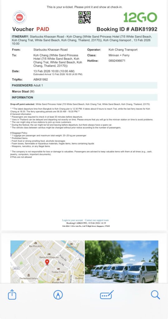 Nog een uur en dan zijn we in Prat alwaar ferry naar Koh Chang en ik word helemaal naar White Sands Princess Hotel gebracht. Vier nachten en alleen maar zwembad en strand.